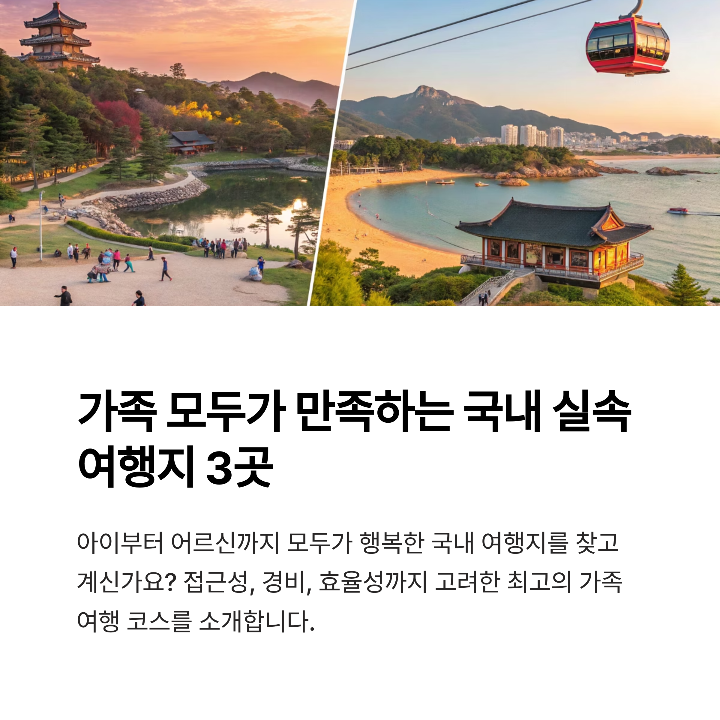 가족여행을 계획할 때 가장 어려운 부분은 바로 모두가 만족할 수 있는 코스를 찾는 일입니다. 연령대도, 취향도 다른 가족 구성원들의 의견을 하나로 모으는 과정은 쉽지 않기 때문이죠. 하지만 국내에도 남녀노소 누구나 즐길 수 있는 실속 있고 알찬 여행 코스가 곳곳에 숨어 있습니다. 이번 글에서는 직접 다녀온 경험을 바탕으로 아이부터 부모님까지 만족했던 가성비 최고, 감동도 가득한 추천 여행지 3곳을 소개합니다. 장거리 이동이 부담스러운 분들이나 주말을 활용한 짧은 여행을 고려하시는 분들께도 꼭 도움이 될 만한 정보입니다. 여러분의 다음 여행에 실질적인 도움이 되기를 바랍니다.