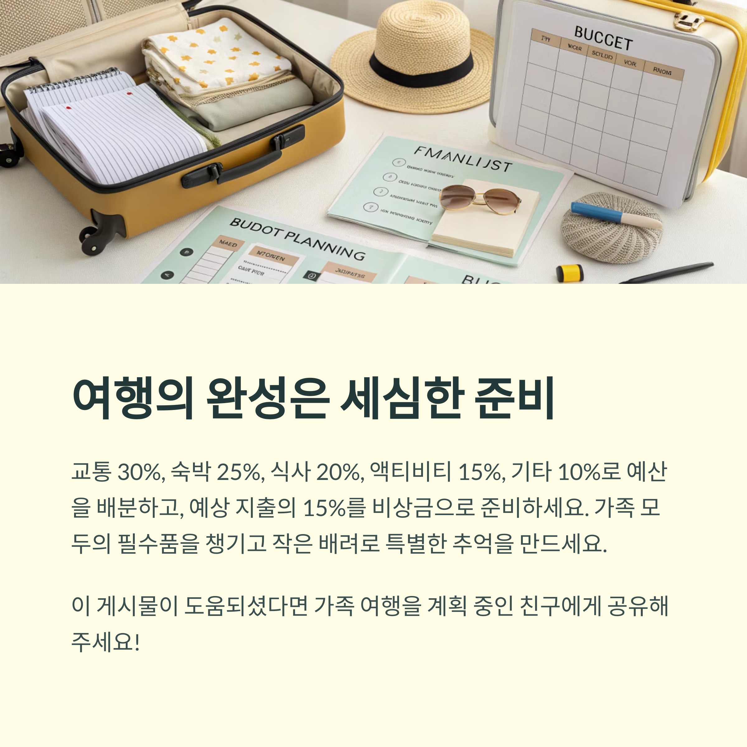 가족 여행은 특별한 의미를 지닌 시간이지만, 잘못 준비하면 스트레스로 남을 수도 있습니다. 그렇기에 출발 전 조금 더 꼼꼼하게 체크하고, 가족 모두의 입장에서 생각해보는 것이 중요합니다. 오늘 소개한 예약 팁과 일정 구성, 예산 전략을 바탕으로 보다 즐겁고 알찬 여행을 준비해보세요. 사전 준비가 만족도를 결정짓는 핵심입니다. 여행이 끝난 후에도 오래도록 기억될 아름다운 순간을 위한 준비, 지금부터 시작해보세요.