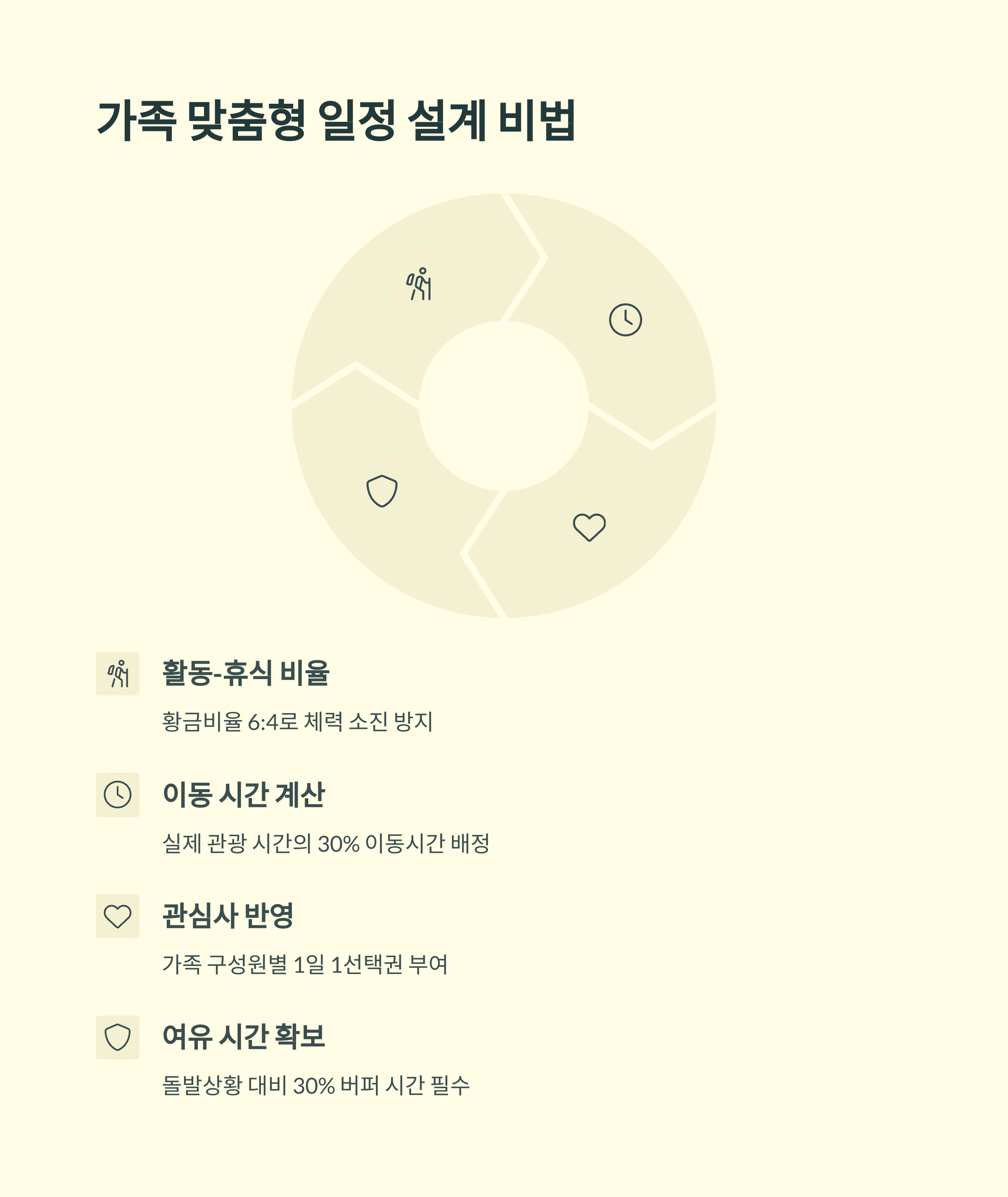 여행 일정은 가족 구성원의 체력과 관심사를 반영하여 유연하게 짜는 것이 좋습니다. 너무 빡빡한 일정은 피로도를 높이고, 아이들이나 어르신은 쉽게 지칠 수 있기 때문입니다. 하루 한두 개의 핵심 활동을 중심으로 구성하고, 휴식 시간을 충분히 확보해 주세요. 음식점 선택 시에도 가족 모두가 먹을 수 있는 메뉴를 미리 확인하거나, 알레르기 여부를 체크하는 세심함이 필요합니다. 여행 전 역할을 나눠 각자 할 일을 정해두는 것도 여행 중 갈등을 줄이는 좋은 방법입니다.