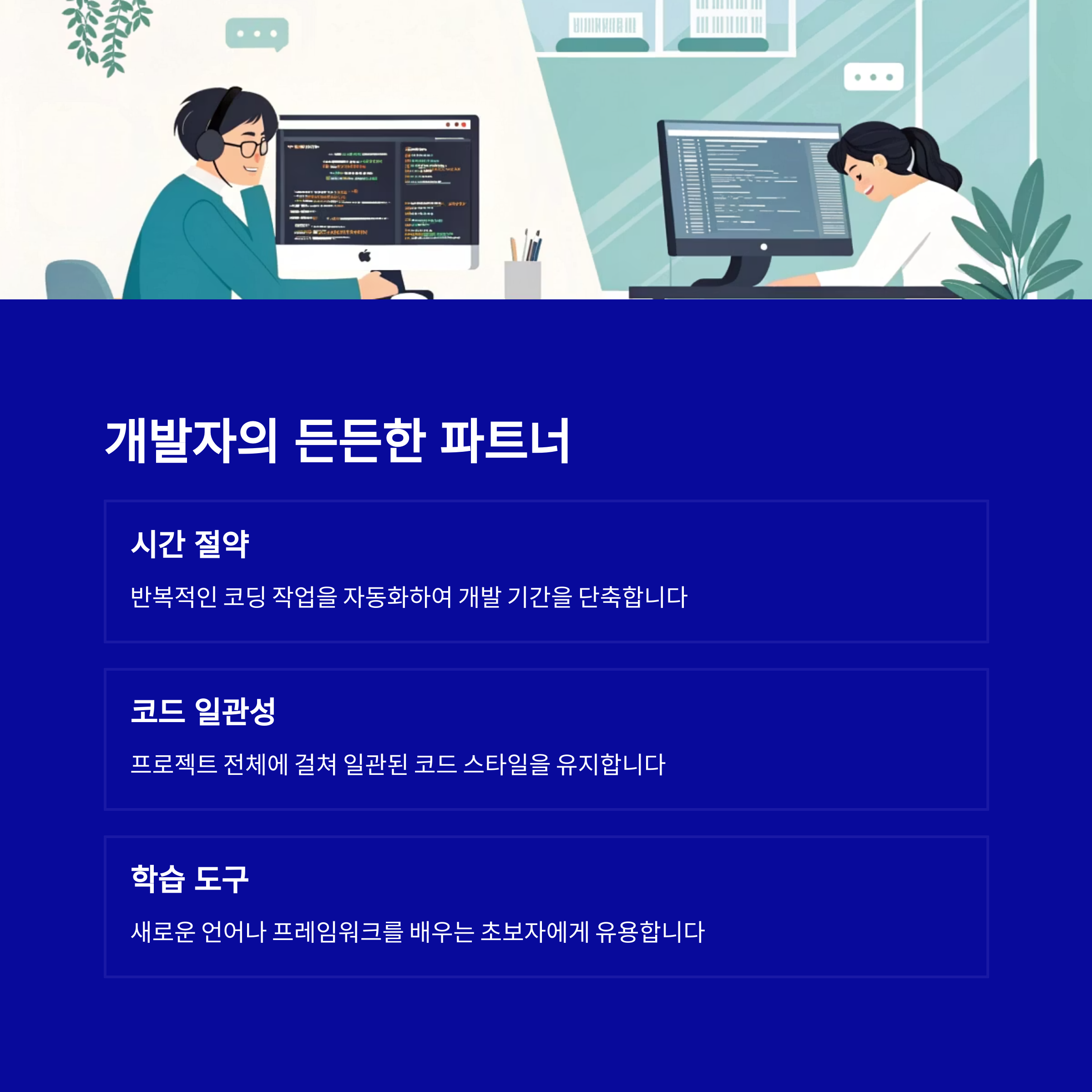 | 생산성 향상 | 반복적인 코딩 시간 단축 및 실수 예방 |