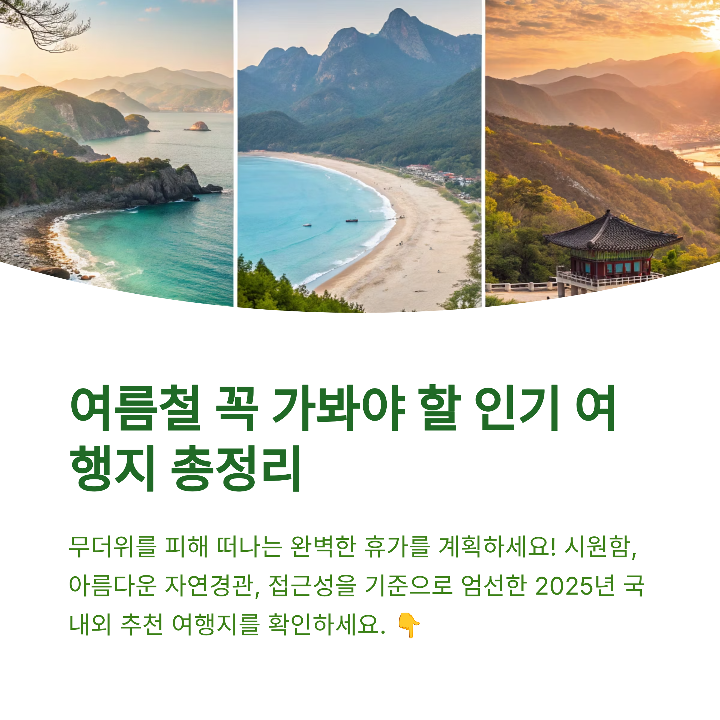 | 여름 여행지 조건 | 시원함, 볼거리, 접근성 3박자 고려 |