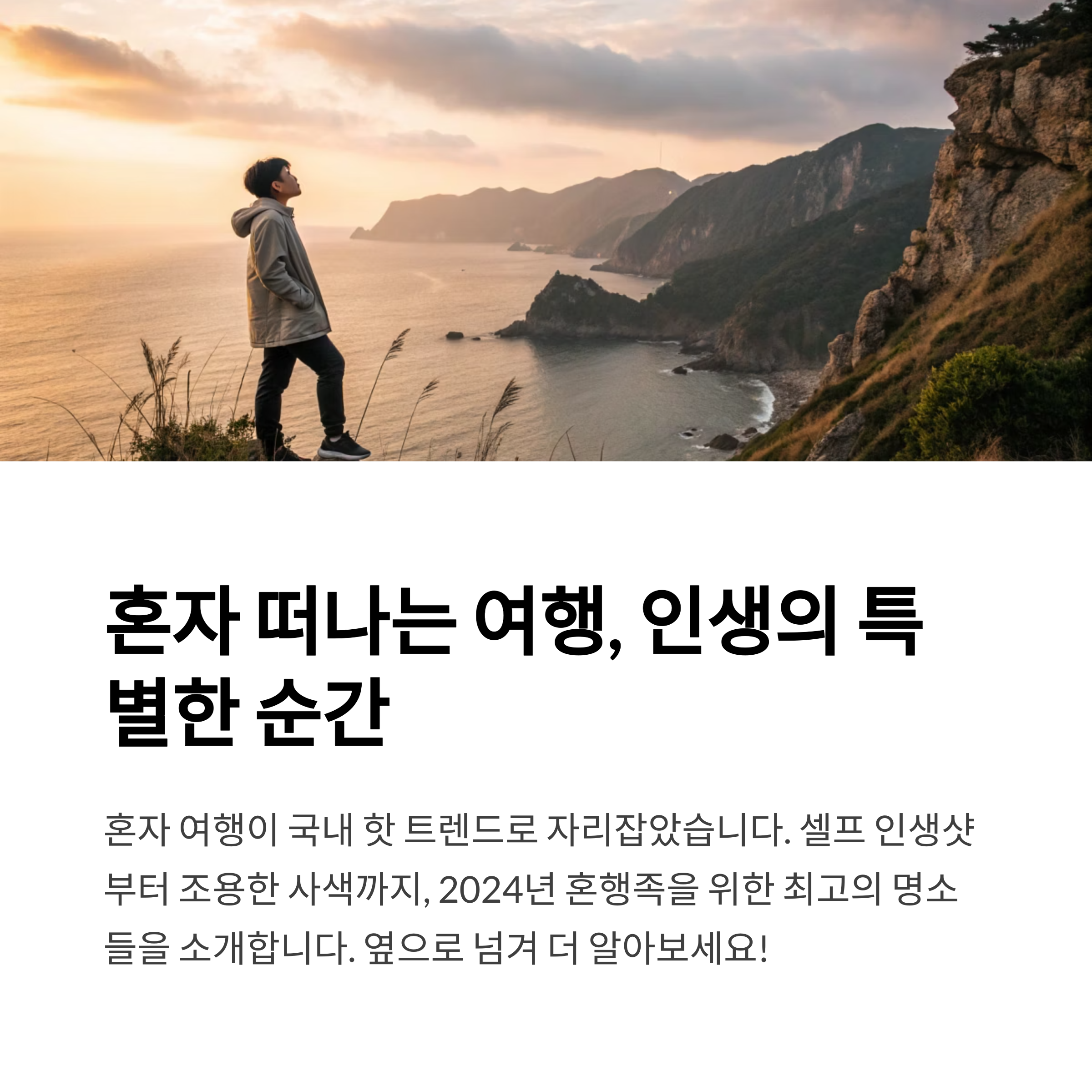 | 혼행족 추천 여행지 | 혼자여도 불편함 없이 즐길 수 있는 국내 명소입니다. |