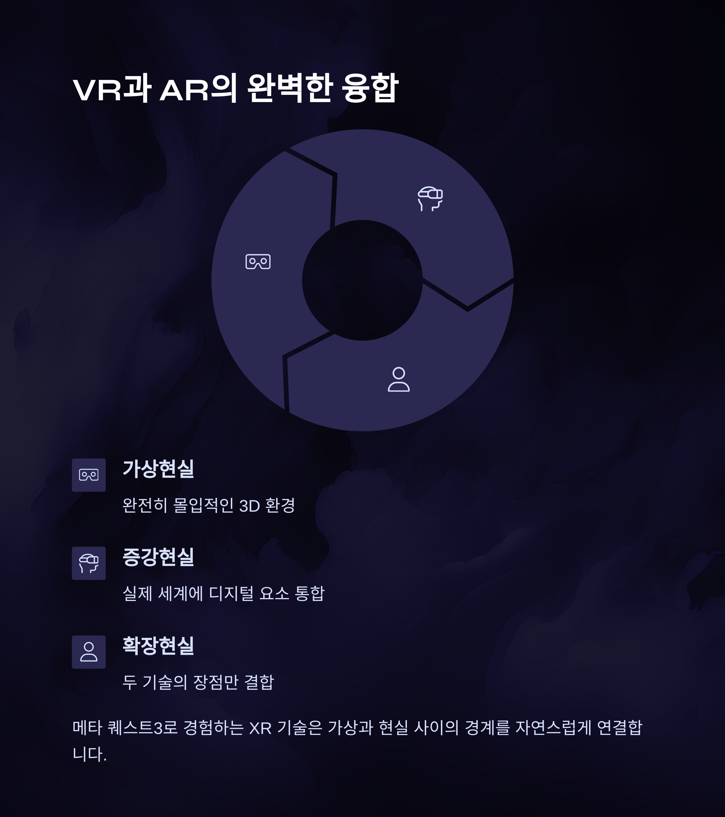 | 메타 퀘스트3 | XR 기술 | 혼합현실 체험 |