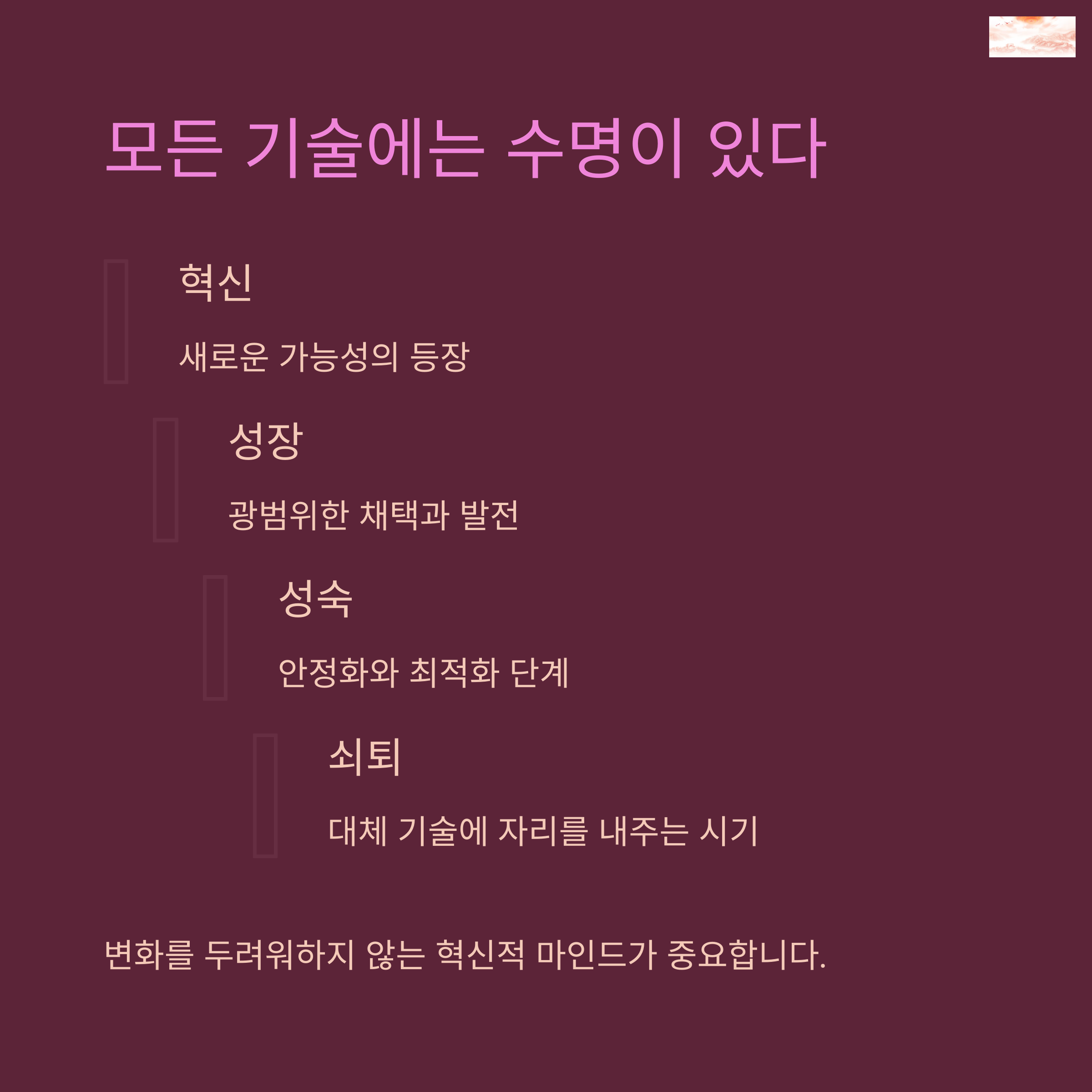 | 기술 수명 주기 | 기술은 시작과 끝을 가진 생명체와 같습니다. |