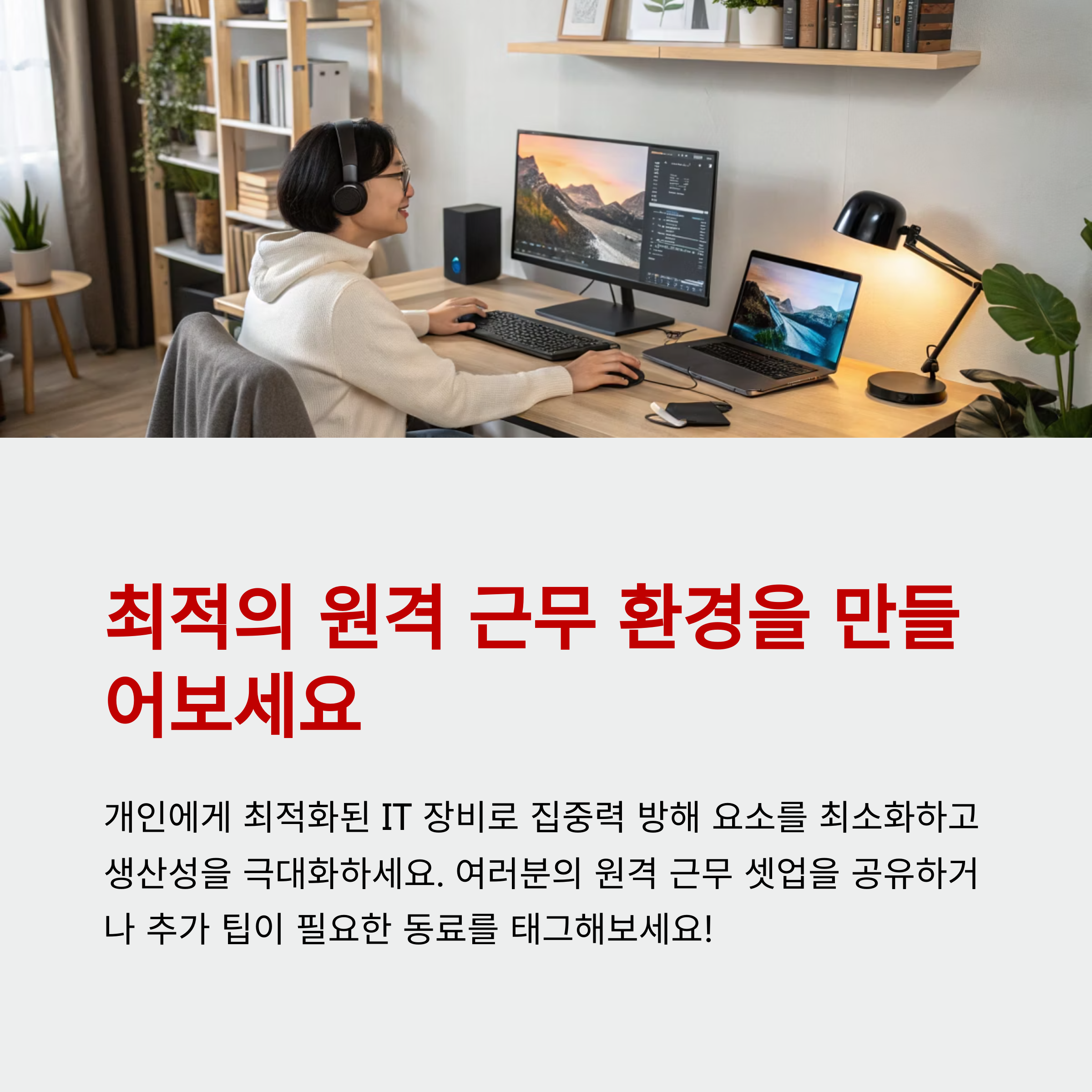 원격 근무가 보편화되면서 집에서의 업무 환경을 어떻게 구성하느냐가 생산성과 직결되고 있습니다. 단순히 노트북 하나로는 집중하기 어려운 환경에서, 업무 몰입도를 높여주는 IT 장비들은 작은 변화로 큰 효율을 가져다줄 수 있습니다. 모니터, 키보드, 마우스는 물론, 화상회의용 웹캠과 노이즈 캔슬링 마이크까지. 각각의 장비가 가지는 성능과 편의성을 알고 활용하면, 재택근무도 훨씬 더 스마트하고 유연하게 할 수 있습니다. 이 글에서는 원격 근무자에게 꼭 필요한 IT 장비 세트를 항목별로 소개하고, 추천 모델과 선택 기준까지 정리해드립니다. 지금부터 ‘집무실'을 최적의 업무 공간으로 바꿔보세요!
