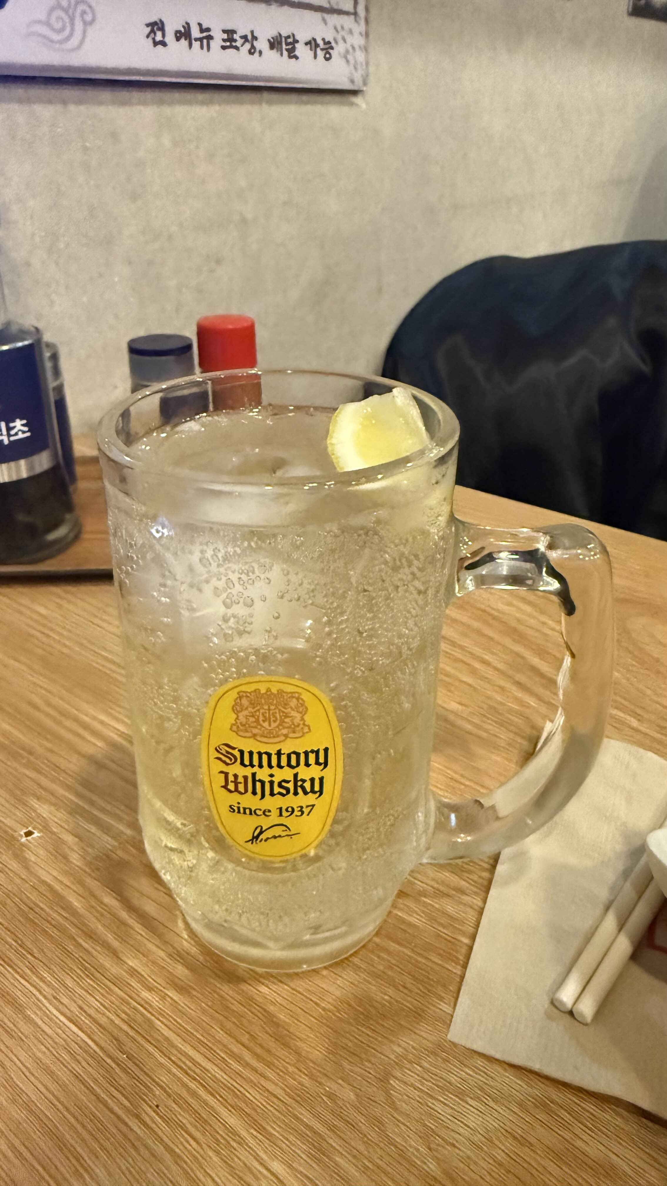 울트라아멘에서는 기본적인 위스키 하이볼을 제공합니다. 깔끔한 탄산과 위스키의 조합이 라멘과 완벽하게 어울립니다! 🍹