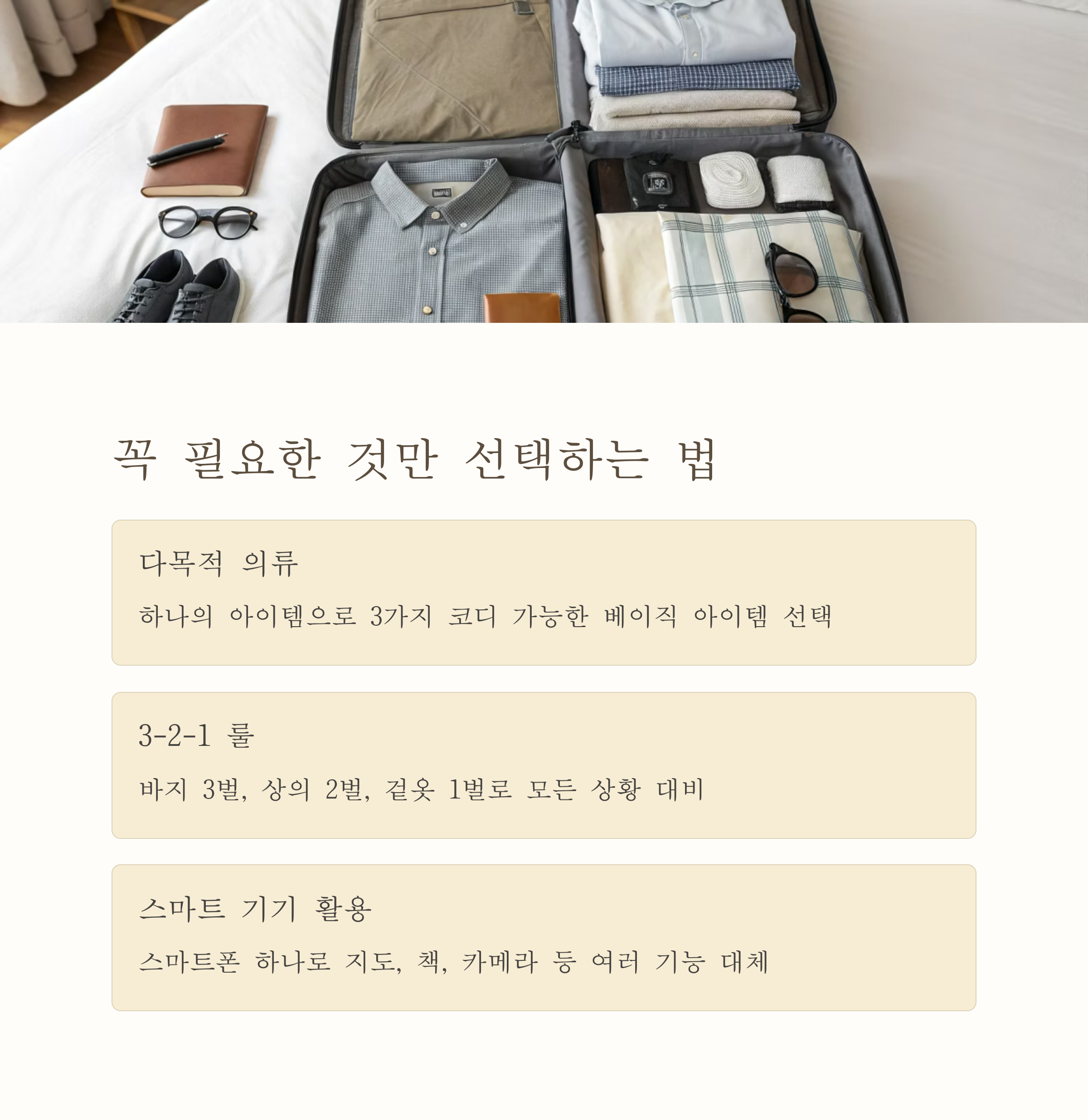 | 짐 줄이기 팁 | 중복 없이 필수만 골라 담는 실전 노하우 공유 |