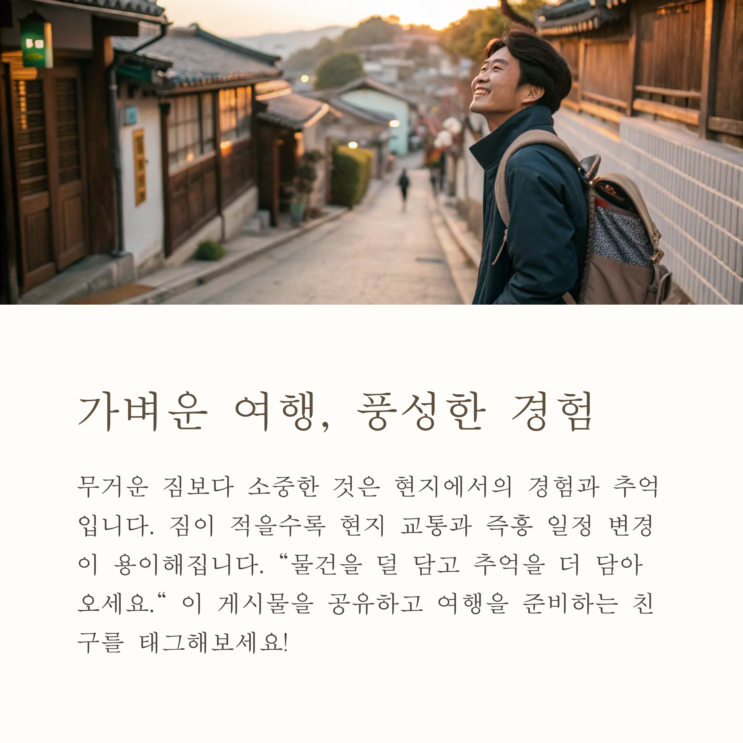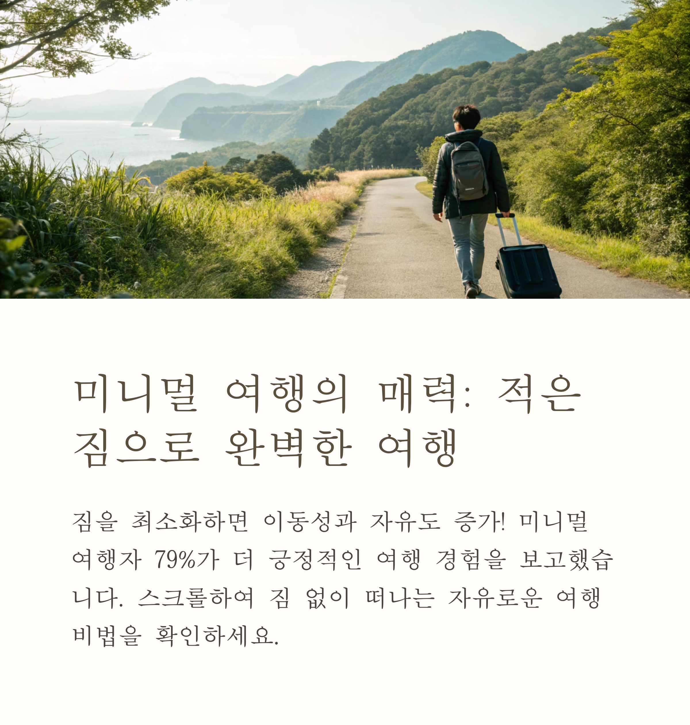 여러분은 여행 짐을 어떻게 줄이시나요? 자신만의 미니멀 여행 꿀팁이나 노하우가 있다면 댓글로 공유해 주세요!