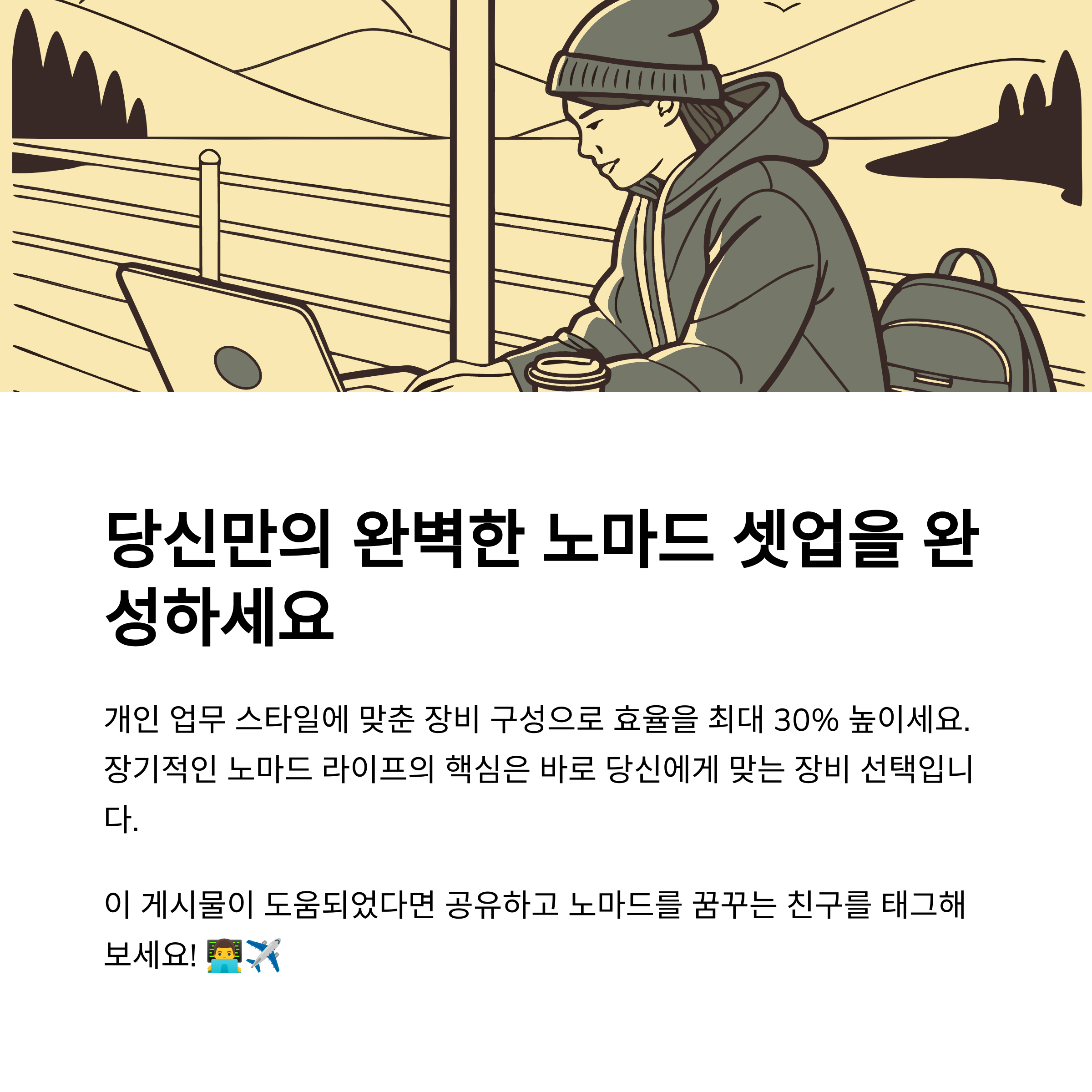 디지털노마드로서 어떤 장비를 사용하고 계신가요? 혹은 추천하고 싶은 기기나 팁이 있으신가요? 댓글로 여러분의 경험을 자유롭게 공유해주세요!