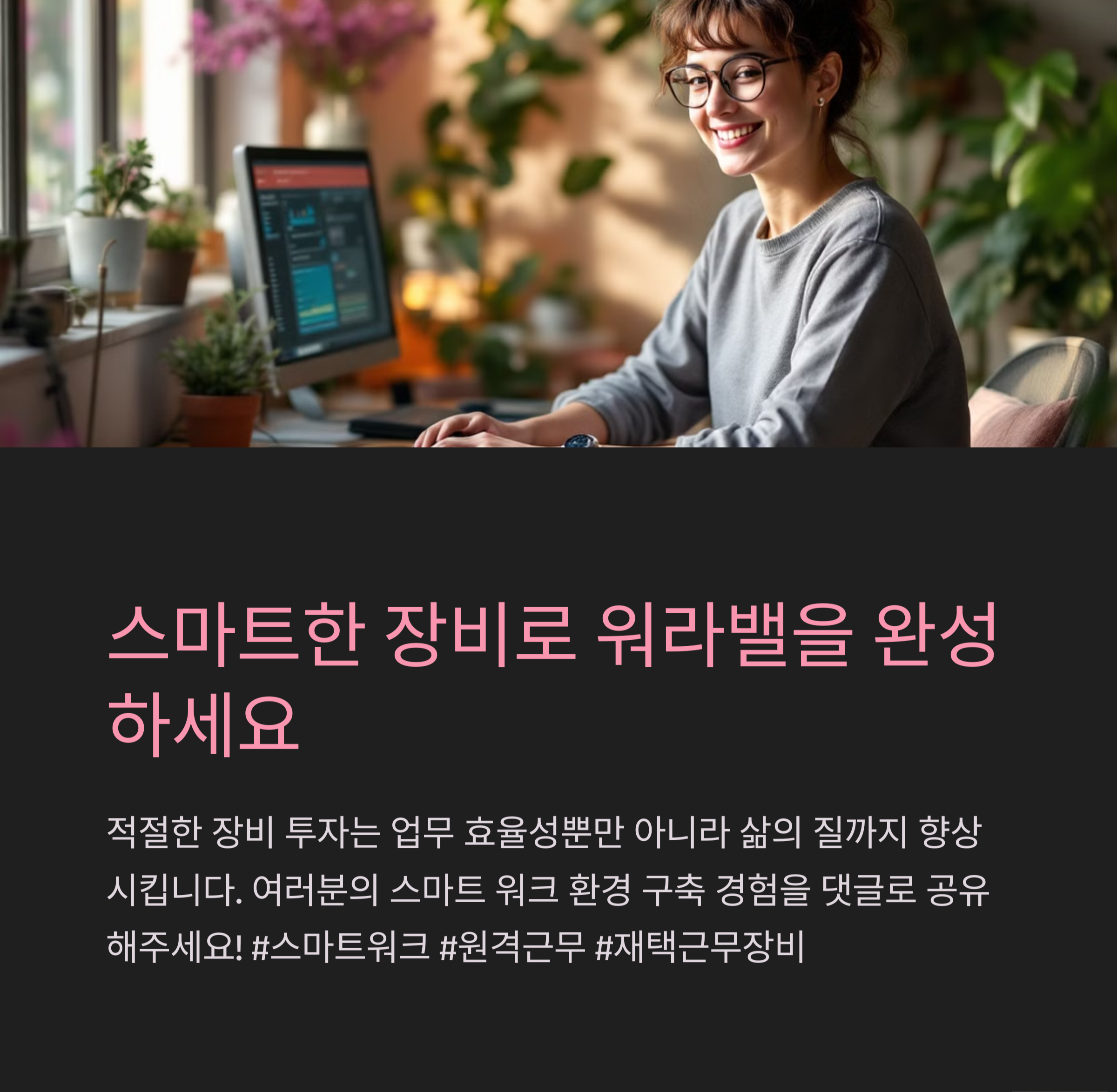 여러분은 어떤 원격근무 장비를 가장 유용하게 사용하고 계신가요? 또는 구매할 때 중요하게 고려했던 기준은 무엇이었는지 댓글로 공유해 주세요!