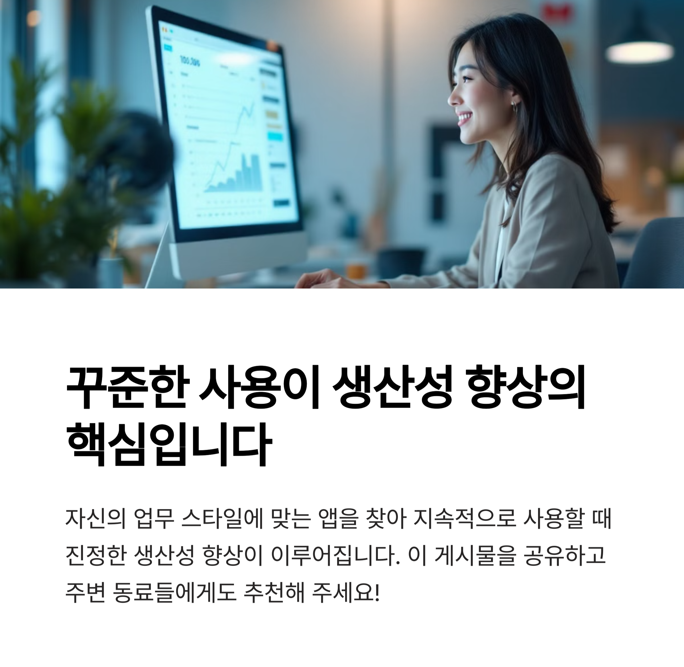 AI 기술은 빠르게 발전하고 있으며, 우리 일상과 업무에도 깊숙이 들어오고 있습니다. 생산성 앱도 마찬가지로, 이제는 단순한 도구를 넘어 일을 함께하는 동료 같은 존재가 되고 있습니다. 다양한 앱 중 내 업무 스타일에 맞고 꾸준히 사용할 수 있는 앱을 고르는 것이 중요하며, 선택 기준을 제대로 알고 있다면 더 이상 수많은 앱 사이에서 고민할 필요도 없습니다. 오늘 소개한 5가지 기준을 바탕으로 여러분만의 스마트한 워크플로우를 구성해보시길 바랍니다.