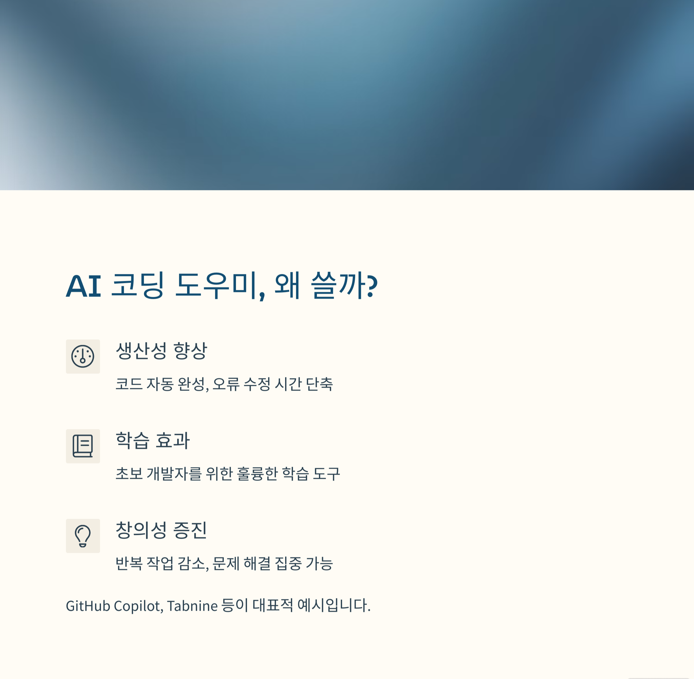 | 개발 생산성 | AI 도우미 단점 | 올바른 활용법 |