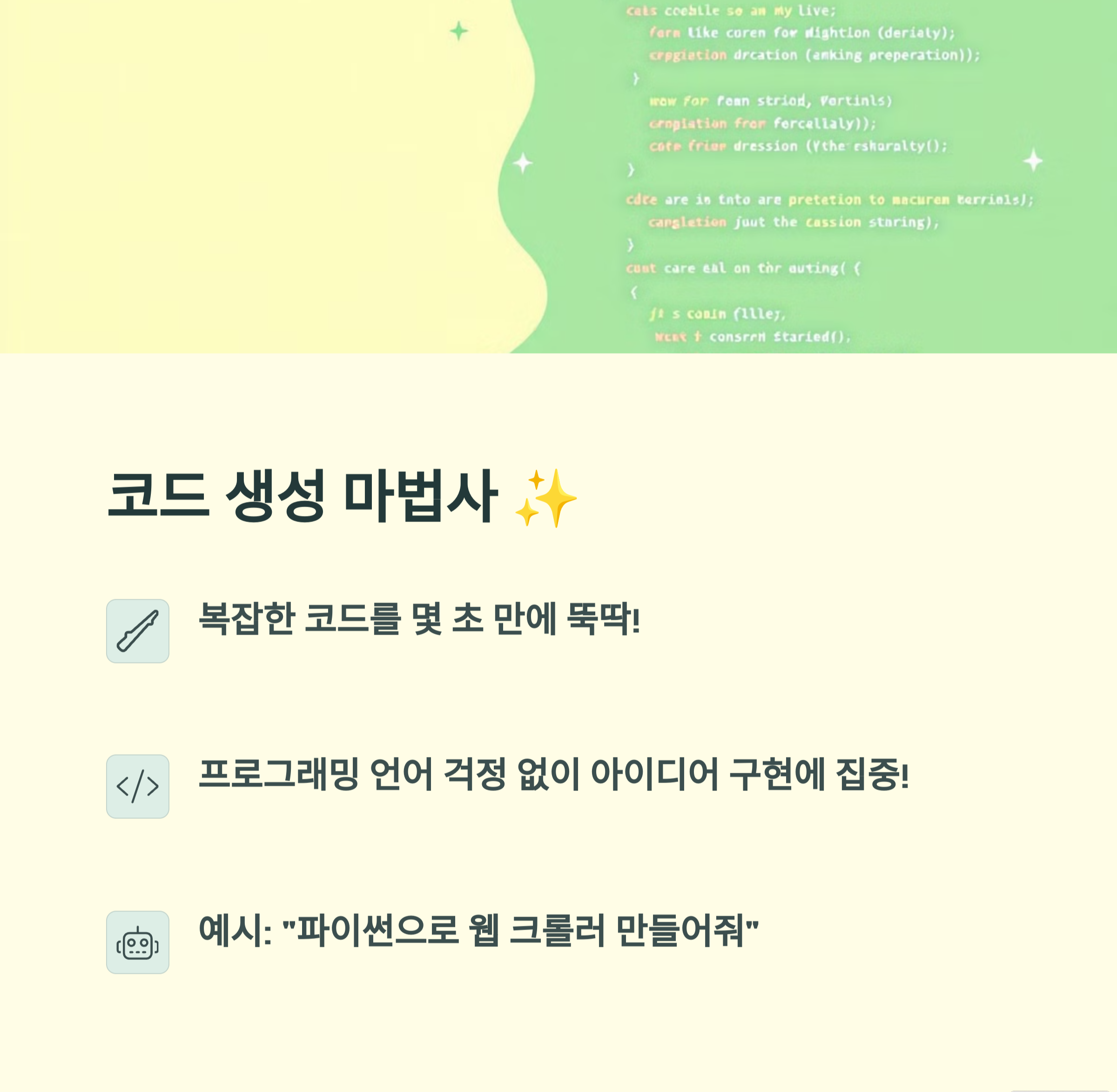 | ChatGPT 코드보조 | 자연어로 코드 생성 및 디버깅을 지원합니다. |
