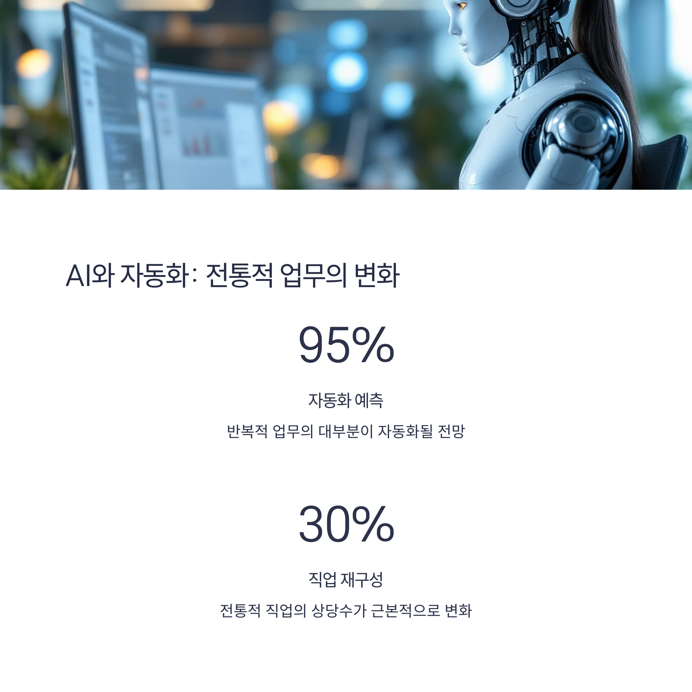 기술의 발전은 우리가 일하는 방식 자체를 바꾸고 있습니다. 특히 인공지능의 발달로 반복적이고 정형화된 업무는 점차 자동화되고 있으며, 이는 회계, 번역, 고객 응대 등 다양한 분야에서 일자리 구조를 변화시키고 있습니다. 반면 인간의 감성, 판단력, 창의력이 필요한 분야는 오히려 그 중요성이 커지고 있어 IT 기술과 결합된 창의직, 기획직, 윤리 관련 직무가 부각되고 있습니다.