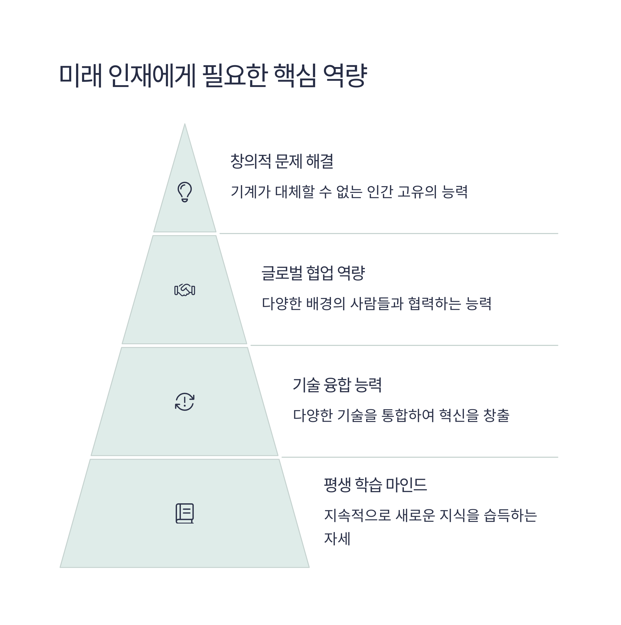 | 직업의 디지털 전환 가속화 | 플랫폼 설계자, AI 커뮤니케이터 등 | 학습 지속성과 창의력 중심의 문제 해결력 |