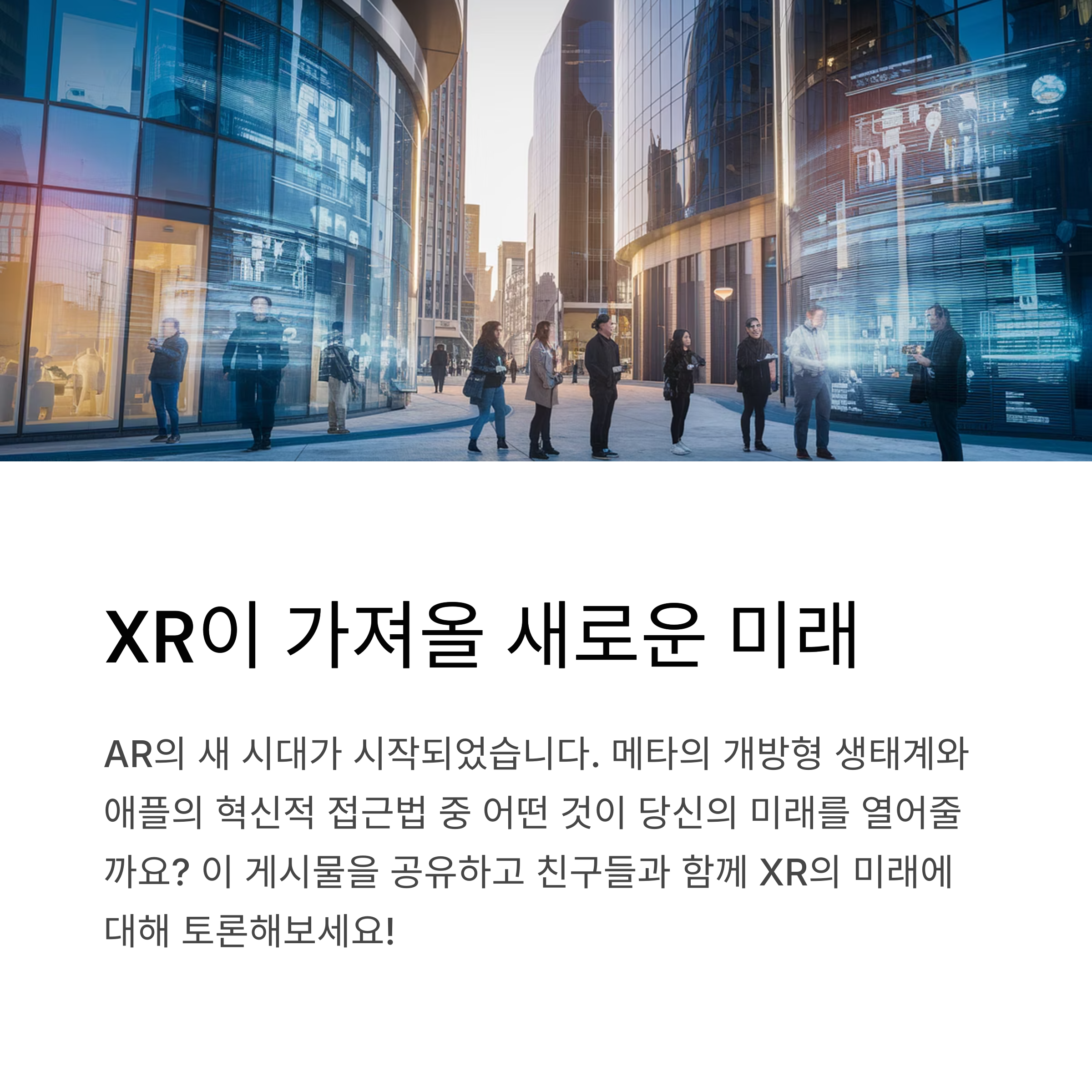 XR 기술은 단순한 유행이 아닌 미래의 일상과 업무를 바꾸는 핵심 기술로 빠르게 자리 잡고 있습니다. 메타와 애플은 서로 다른 방식으로 XR 생태계를 확장하고 있으며, 결국 사용자 선택에 따라 시장 방향도 달라질 것입니다. 본인의 사용 목적, 예산, 생태계 활용도 등을 꼼꼼히 고려해 선택하는 것이 중요하며, 앞으로 몇 년 내에 XR 기기 하나쯤은 누구나 보유하게 되는 시대가 도래할 가능성이 매우 큽니다.
